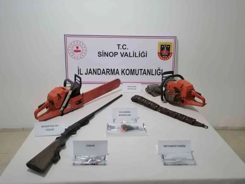 Sinop’ta düzenlenen operasyonda toz esrar, metamfetamin, ruhsatsız av tüfeği ve 2 adet çalıntı ağaç kesme motorları ele geçirildi. Yakalanan 3 kişi hakkında yasal işlem başlatıldı.