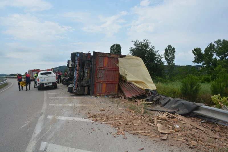 Sinop’ta meydana gelen kazada kereste yüklü kamyon devrildi. Tır ile bariyer arasına sıkışan sürücü ise AFAD ve itfaiye ekipleri tarafından kurtarıldı.