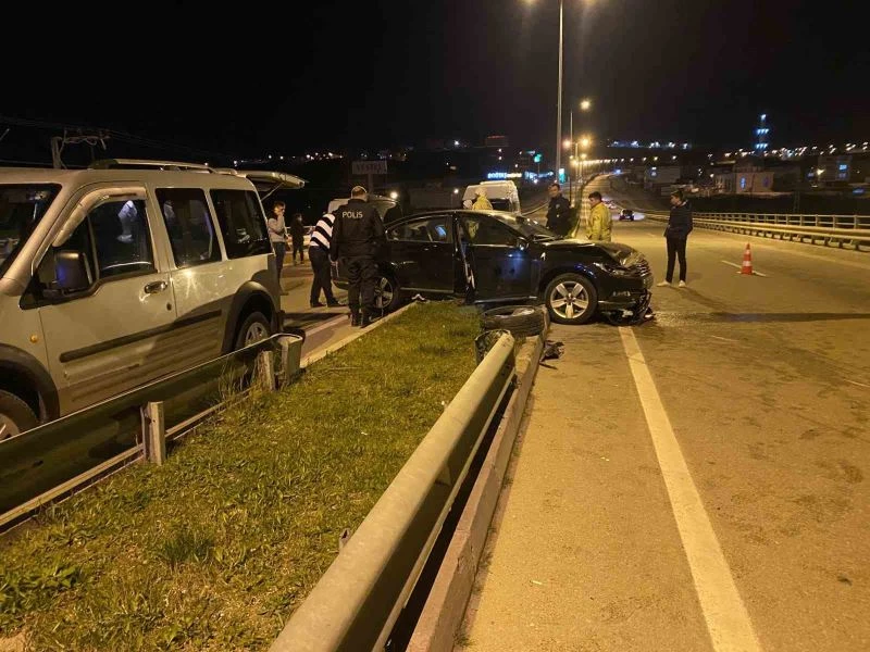 Kaza, saat 23.00 sıralarında Samsun-Sinop karayolu Sanayi üst geçidinde meydana geldi. Edinilen bilgiye göre, B.G.’nin kullandığı 57 AB 770 plakalı otomobil, seyir halindeyken direksiyon hakimiyetini kaybetmesi sonucu orta refüje çıktı. Kazada sürücü B.G. ile araçta bulunan N.G. ve O.K. yaralandı. İhbar üzerine olay yerine gelen sağlık ekiplerince yaralılar araçtan çıkarılarak Sinop Atatürk Devlet Hastanesi’ne kaldırıldı. Refüje çıkan otomobil ise çekici yardımıyla olay yerinden kaldırılarak bir süre trafiğe kapatılan yol yeniden açıldı.