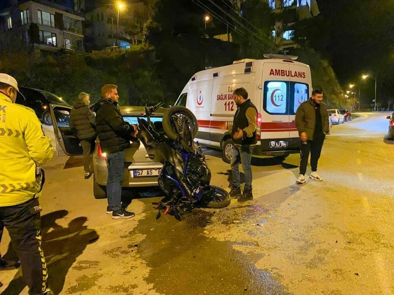 Kaza, saat 20.00 sıralarında Gazi Caddesi Karakum mevkisinde meydana geldi. Edinilen bilgiye göre, C.S.E. hakimiyetindeki 57 AS 881 plakalı otomobil, seyir halindeyken yan yola dönüş yaptığı sırada karşı şeritten gelen K.D. hakimiyetindeki 57 KE 867 plakalı motosikletle çarpıştı. Çarpmanın etkisiyle yaklaşık 10 metre savrulan motosiklet sürücüsü yaralandı. Olay yerine sevk edilen sağlık ekiplerince yaralı sürücü, Sinop Atatürk Devlet Hastanesi’ne kaldırıldı. Kazayla ilgili inceleme başlatıldı.