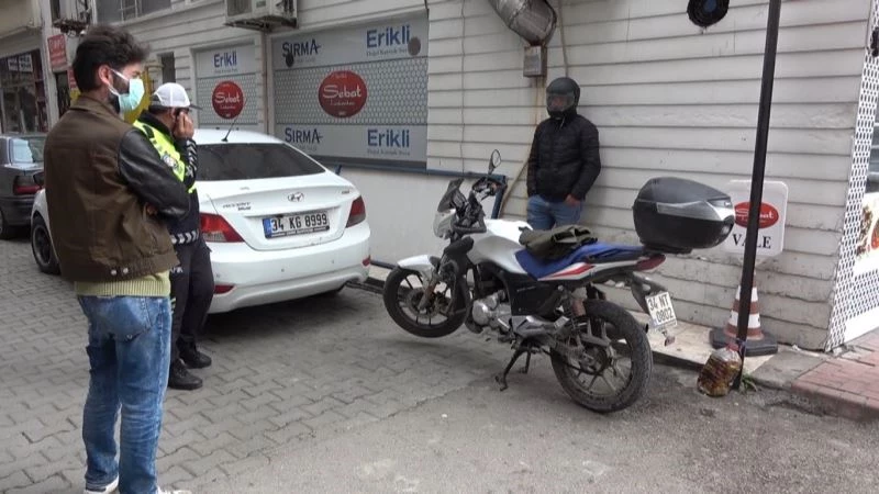Sinop’ta tam kapanmanın ilk gününde denetimler sıklaştırıldı. Polis ekipleri sokağa çıkma kısıtlaması ve karantina ihlallerine de fırsat vermedi. Gelen ihbarları da değerlendiren ekipler ’pozitif bir şahsın motosikletiyle dolaştığı’ ihbarı üzerine alarma geçti. Saat 10.30 sıralarında gerçekleşen olayda 34 NT 0802 plakalı motosiklet, sürücüsü Deniz A. ile birlikte Nalbant Sokak üzerinde durduruldu. Ekipler şahsı bir süre güvenli mesafede bekletti.