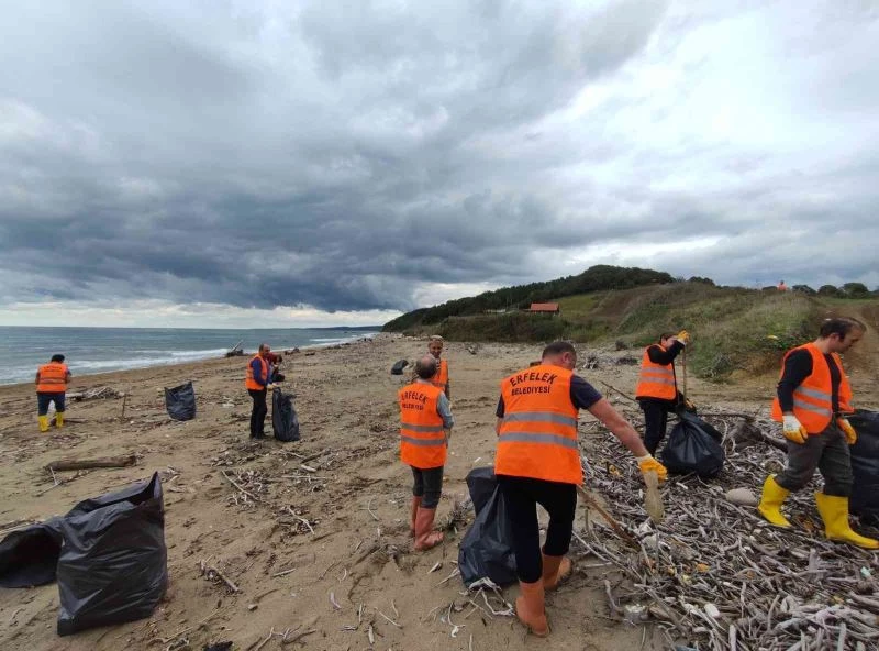 Sinop’un Erfelek ilçesinde belediye personelleri ‘deniz çöpleri il eylem uygulaması’ çerçevesinde plaj temizliği gerçekleştirdi. Toplanan çöpler ise Sıfır Atık Projesi’nde değerlendirilerek geri dönüşüme kazandırılıyor.