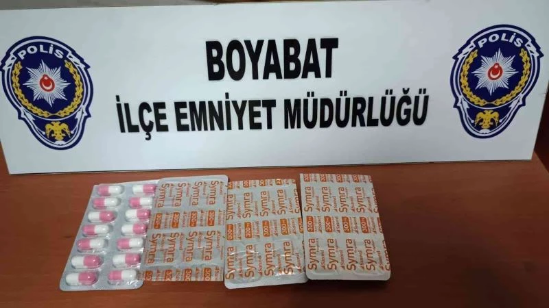 Boyabat İlçe Emniyet Müdürlüğü ekiplerince düzenlenen trafik uygulamasında kontrol edilen bir araç ve içerisindeki şahıslar üzerinde yapılan aramalarda 4 tablet halinde 56 adet sentetik ecza hap ile 1 adet payp ele geçirildi. Araçta bulunan 2 kişi gözaltına alınarak haklarında yasal işlem başlatıldı.