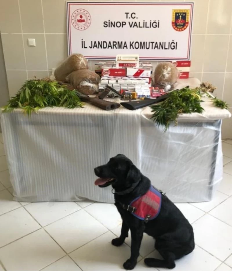 Sinop jandarma ekipleri, yapılan istihbari çalışmalar üzerine merkeze bağlı Karapınar köyünde iki şahsa ait 6 adreste uyuşturucu madde arama köpeği Perma ile yaptıkları kontrolde 6 kök kenevir bitkisi, 3 adet kenevir tohumu, 1 adet sentetik hap, 2 adet ruhsatsız av tüfeği, 1 adet ruhsatsız tabanca, 2 adet şarjör, 3 adet tabanca fişeği, 15.5 kg kıyılmış tütün, 8720 adet içi tütün dolu makaron ele geçirdi. Jandarma ekipleri, olayla ilgili 2 vatandaşı gözaltına alarak adli işlem başlattı.