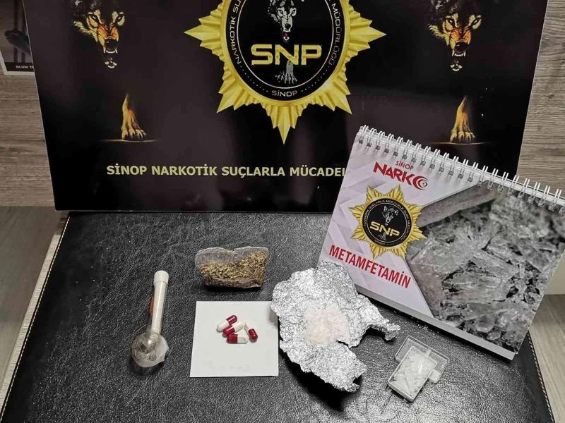 Sinop’ta 4,37 gr sentetik bonzai, 4 adet uyuşturucu sentetik hap ve 8,17 gr metamfetamin maddesi ele geçirildi.
