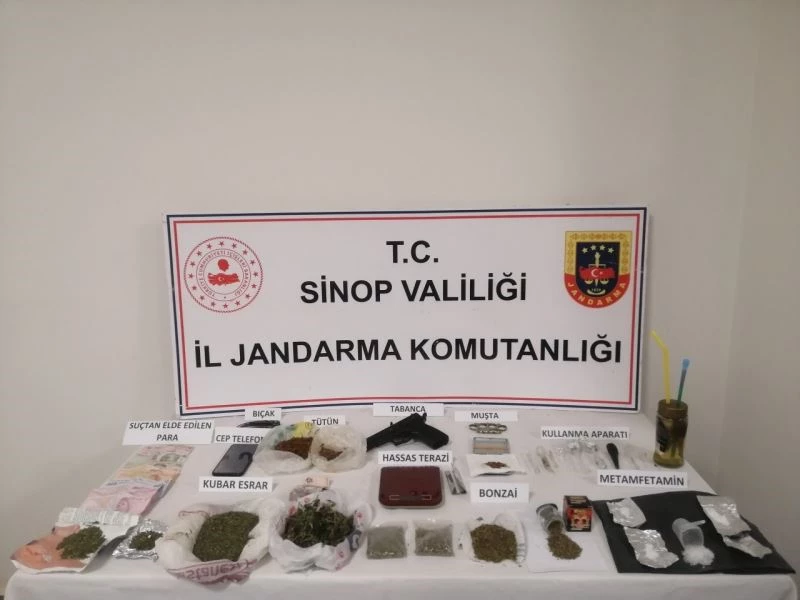 Sinop’ta yapılan uyuşturucu operasyonunda 158 gram kubar esrar, 32 gram metamfetamin, 27 gram bonzai ele geçirildi.