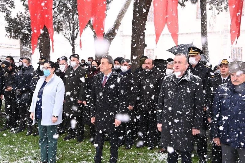 Sinop’ta 18 Mart Çanakkale Zaferi ve Şehitleri Anma programının 107. yıldönümünde tören, yoğun kar altında eksiksiz gerçekleşti. Törene katılan Sinop Valisi Erol Karaömeroğlu, Belediye Başkanı Barış Ayhan, Cumhuriyet Başsavcısı Duygu Bayar, kamu kurum ve kuruluş amirleri, askerler, polisler ve öğrenciler katıldı. Programda protokol, yoğun kara rağmen şemsiye kullanmadı. Sinop Deniz Şehitleri Anıtı önünde çelenk sunma töreniyle başlayan program, ardından saygı duruşu ve İstiklal Marşı sonrası 3 el saygı atışı ile devam etti.