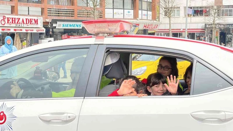 DÜZCE – Düzce’de 23 Nisan Ulusal Egemenlik ve Çocuk Bayramı’nda polisler miniklere sürpriz yaptı. Çocuklar ile polisler konvoy yapıp, halkı selamlarken, konvoy sonunda ise trafik eğitimi alarak unutulmaz bir gün yaşadı.