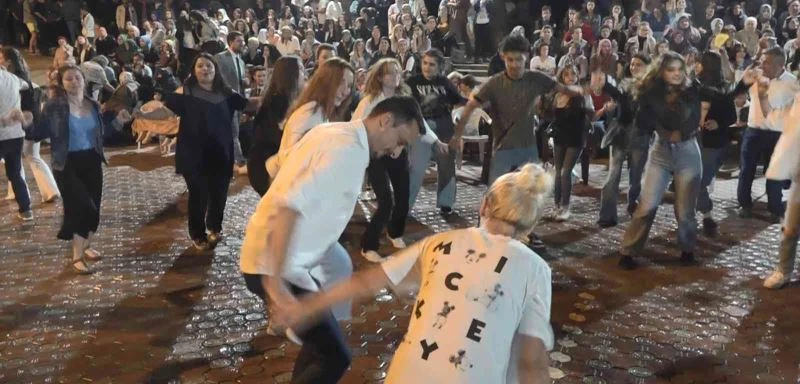 Akşam saatlerinde aniden bastıran yağmur sebebiyle çiftin mutlu gününe ortak olmak isteyen vatandaşlar, yağmura halay çekti. Yaklaşık 2 saat yapan yağmurun dinmesini beklemeyen vatandaşlar, yağmura aldırış etmeden büyük bir coşku içinde oynadı. Düğün yağmurun artmasıyla kapalı alanda devam etti.
