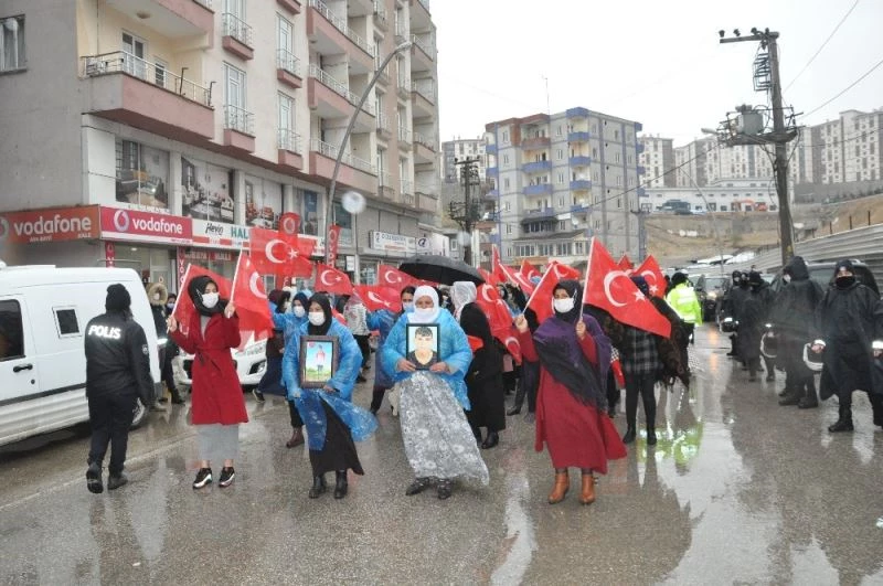 Şırnak’ta PKK’lı teröristlerce çocukları dağa kaçırılan, yakınlarını terör saldırılarında kaybeden anneler ile şehit yakınları ve gaziler, HDP il binası önünde eylem düzenledi. Şırnak annelerinin yoğun yağmur altında düzenlediği eylem 19’uncu haftasına girdi.