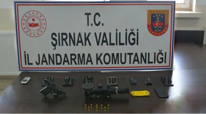 Edinilen bilgiye göre, Şırnak Cumhuriyet Başsavcılığı koordinesinde Şırnak İl Jandarma Komutanlığı tarafından Şırnak merkezli olarak Mardin ve Siirt illerinde PKK/KCK terör örgütüne yardım ve yataklık ettikleri tespit edilen şüphelilerin yakalanmasına yönelik 23 Mart’ta 9 ayrı adrese operasyon düzenlendi. Operasyonda 10 şüpheli yakalanırken, ikametlerde yapılan aramalarda 1 adet Beretta marka tabanca ve tabancaya ait şarjör, 7x65 çapında 8 adet fişek, 1 adet silah üstü termal dürbün, 1 adet ruhsatsız av tüfeği, 1 adet terör örgütünü simgeleyen bez parçası, şüphelilere ait cep telefonları ve muhtelif dijital materyaller ele geçirildi. Gözaltına alınan şahısların işlemleri devam ediyor.