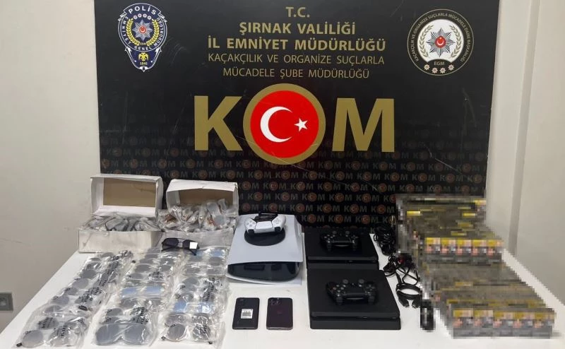 Şırnak ve Habur Sınır Kapısında yapılan operasyonlarda, 0,7 gram esrar, 18,29 gram eroin, 160 gram skunk, bin 420 paket sigara, 6 adet elektronik oyun konsolu, 2 adet cep telefonu, 92 adet muhtelif gözlük ele geçirildi.