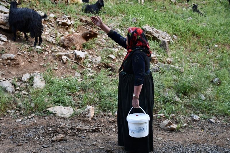 Şırnak’ın Beytüşşebap ilçesinde küçükbaş hayvanlar uzun bir aranın ardından yeşilliklerle buluştu. Koyun ve keçilerin ahırlarından çıkması ile birlikte berivanlar da süt sağmak için yaylaların yolunu tuttu.
