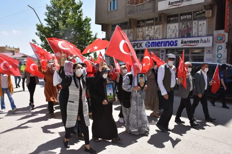 PKK’lı teröristlerce çocukları dağa kaçırılan ve yakınlarını terör saldırılarında kaybeden Şırnaklı kadınlar, şehit ve gazi aileleri ile sivil toplum kuruluşlarının kadın üyeleri, Şehit Üsteğmen Mehmet Esin Caddesi’nde gerçekleştirdikleri yürüyüşün ardından HDP İl Başkanlığı binası önüne geldi. Ellerinde Türk bayrakları ve dağa kaçırılan çocuklarının fotoğrafları bulunan aileler, "Kahrolsun PKK, iş birlikçi HDP", "Şehitler ölmez, vatan bölünmez", Kahrolsun PKK", "Kürt-Türk kardeştir, ayrım yapan kalleştir" sloganları attı.