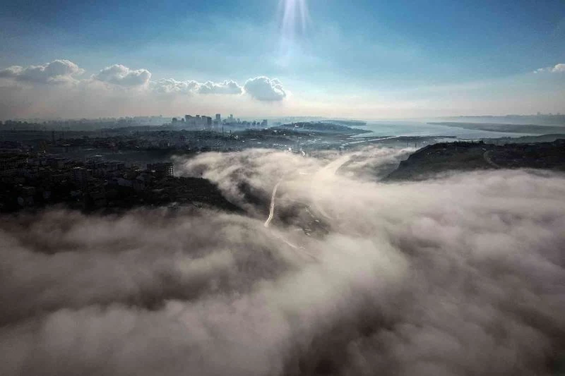 Sabah saatlerinden itibaren etkili olan sis İstanbul’un birçok noktasında görüldü. Sazlıdere gölü üzerinden gelen sis bulutu Küçükçekmece gölüne doğru gökyüzünü kapladı. Sis bazı tepelerde binaların adeta bulutların üzerinde durduğu izlenimi uyandırdı. Gökyüzü ile birleşen sis bulutu kartpostallık görüntüler oluşturdu.