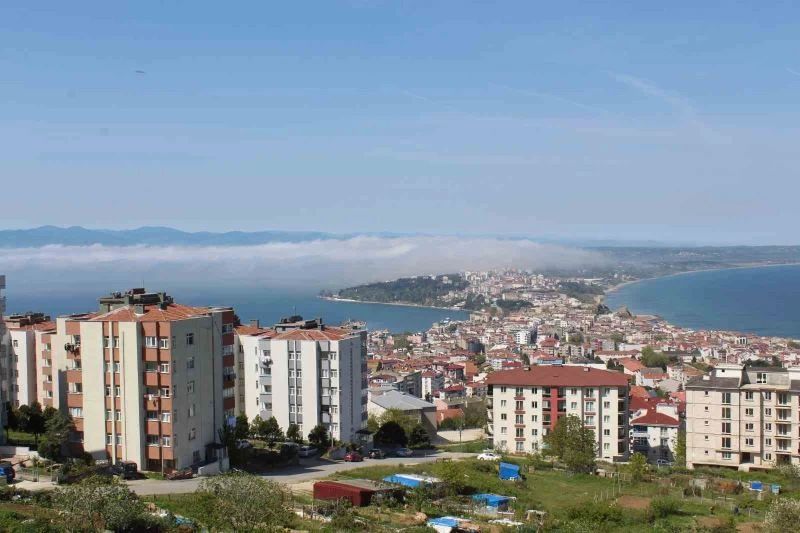 Sinop’ta denizden gelerek şehrin üzerinden geçip daha sonra da kaybolan sis bulutları, seyrine doyum olmayan manzara oluşturdu.