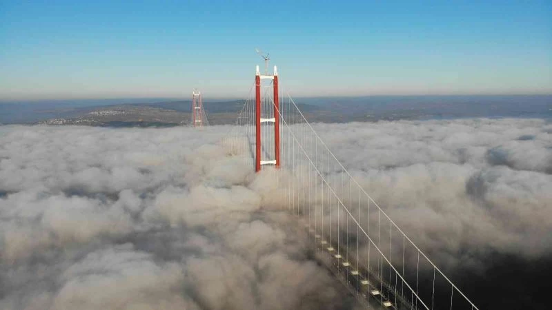 2023 metre orta açıklığıyla dünyanın en uzun orta açıklığa sahip asma köprüsü olan 1915 Çanakkale Köprüsü’nün sis bulutu altındaki hali ise dron ile görüntülendi. Sis bulutu geçişi sırasında 1915 Çanakkale Köprüsünün görüntüsü büyüledi.