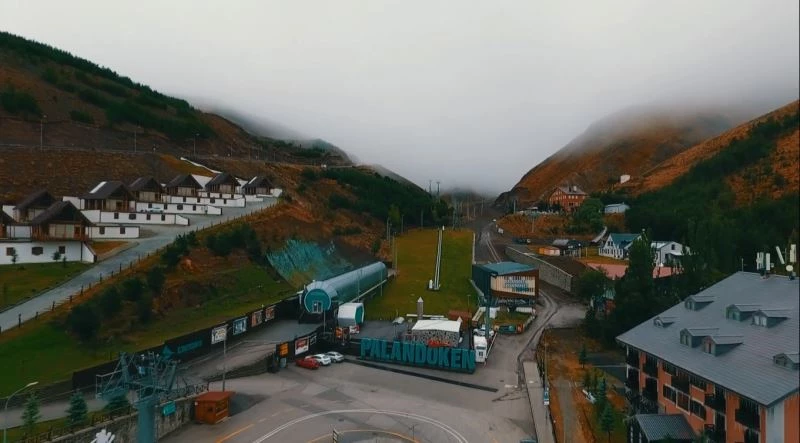 Drone ile havadan görüntülenen Palandöken Kayak Merkezinde yağmur devam ederken görüş mesafesinin ise 10 metreye kadar düştüğü göründü.
