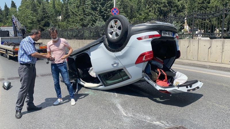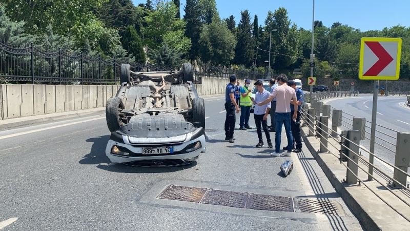 Şişli’de virajı alamayan bir otomobil, refüjdeki demir bariyerlere çarparak takla attı. Hafif yaralanan kadın sürücü ambulansla hastaneye kaldırıldı.