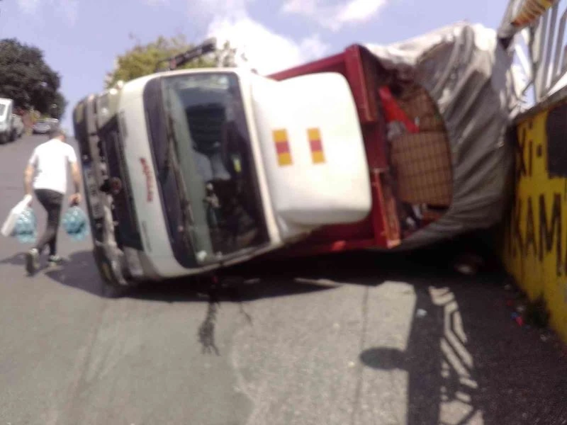 Şişli’de karşı yönden gelen araca yol vermek isteyen şoförün kullandığı kamyonet yol kenarına devrildi. Kazada şans eseri ölen ya da yaralanan olmazken, kamyonet çekiciyle kaldırıldı.