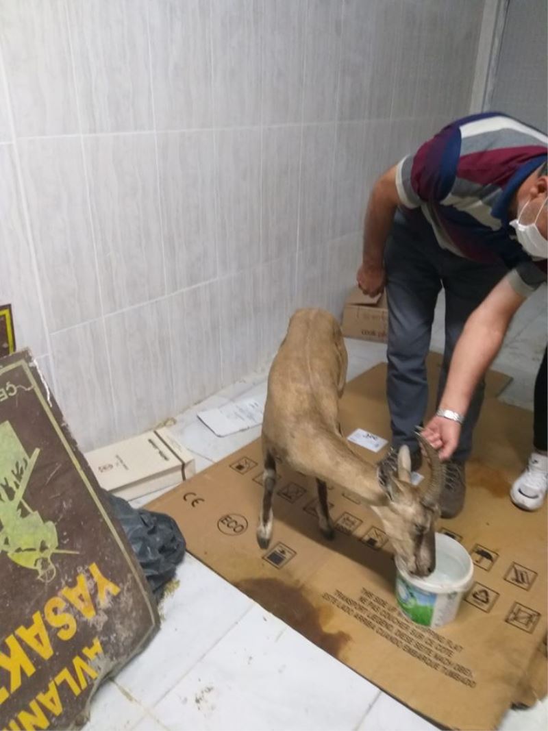 Sivas’ın Divriği ilçesinde vatandaşlar tarafından bulunan yaban keçisi tedavi altına alındı