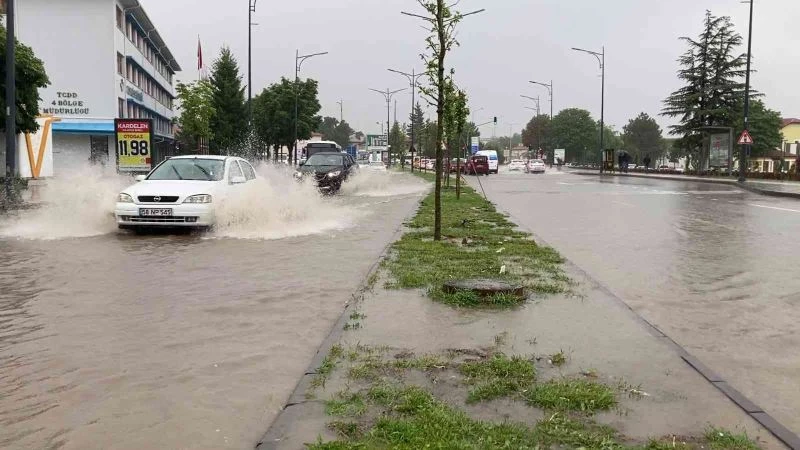 Sivas’ta etkili olan sağanak yağış, caddeleri göle çevirdi.