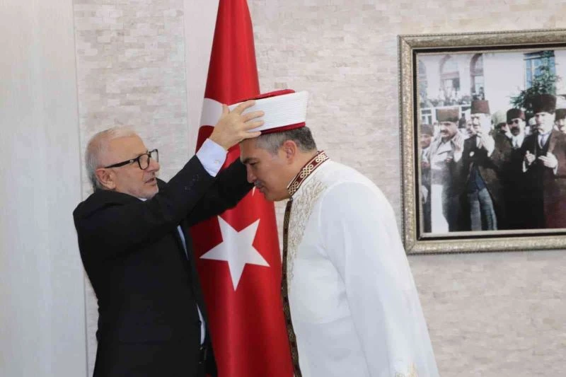 İl Müftüsü Altunkaya’ya cübbesini Sivas’ta geçtiğimiz yıllarda müftü olarak görev yapan ve şu anda da Kayseri İl Müftüsü olan Yusuf Akkuş giydirdi.
