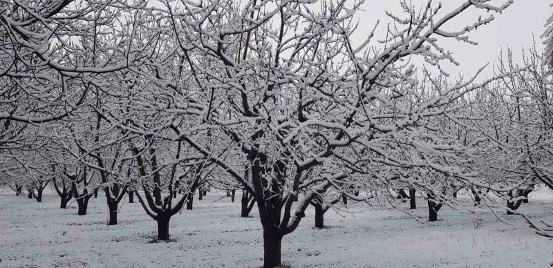 Uşak’ta sabah saatlerinde etkisini gösteren kar yağışı, çiçek açan meyve bahçelerini olumsuz etkilerken hasadı neredeyse imkansız hale getirdi.