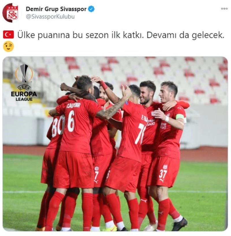 UEFA Avrupa Ligi I Grubu 3. hafta karşılaşmasında DG Sivasspor, sahasında Azerbaycan ekibi Karabağ’ı 2-0 yendi. Gruptan çıkma şansını artıran Sivasspor Kulübü, maçın ardından sosyal medya hesabından iddialı bir paylaşımda bulundu.