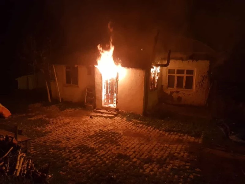 Sivas’ın Yıldızeli ilçesi Aşağıçakmak köyünde bir ev alevlere teslim oldu. Evin yandığı anlar cep telefonu kamerasına yansıdı.