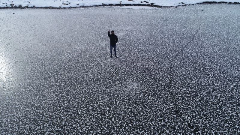 Sivas’ta geçtiğimiz hafta etkili olan kar yağışı yerini dondurucu soğuklara bıraktı. Sibirya soğuklarını yaşandığı kentte soğuk hava hayatı olumsuz yönde etkiledi. Sivas merkeze bağlı Yıldız beldesinde akşam saatlerinde hava sıcaklığının sıfırın altında 15 dereceye düşmesiyle Yıldız Göleti’nin yüzeyi buzla kaplandı. Göletin yüzeyinde oluşan buzun kalınlığı 10 santimetreyi buldu. Gençler göletin üzerine çıkarak yürüdü. O anlar drone ile havadan da görüntülendi.