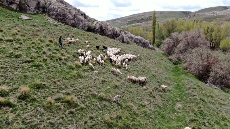 Sivas’ın Ulaş ilçesinin Kurtlukaya köyünde yaşayan sürü sahibi Cengiz Kaplan, hayvanları 12 saat otlattıklarını belirterek, “Burası Sivas’ın Ulaş ilçesinin Kurtlukaya köyü, şuan bulunduğumuz yer Dervişin taşı dediğimiz bir mevki. Genelde hayvanlarımızı yeşil olduğu için buralarda otlatıyoruz. 140 tane hayvanımız var sabah 8’de çıkartıyoruz akşam 8’e kadar 12 saat yayıyoruz. Öğlen 1 saat kadar hayvanlar yatıyor bizde dağda çayımızı içiyoruz. Akşam 8’de ise hayvanlarımızı içeri koyuyoruz. Karlar kalktı otlar yeşerdi koyunlarımızı yaymaya başladık. Bu günde koyunlarımızın kırkım işlemini yaptık şuanda yayıyoruz. Yalnız tek sıkıntımız biraz yağışlar kısıtlı yağmur yağmıyor başkada bir sıkıntımız yok” dedi.