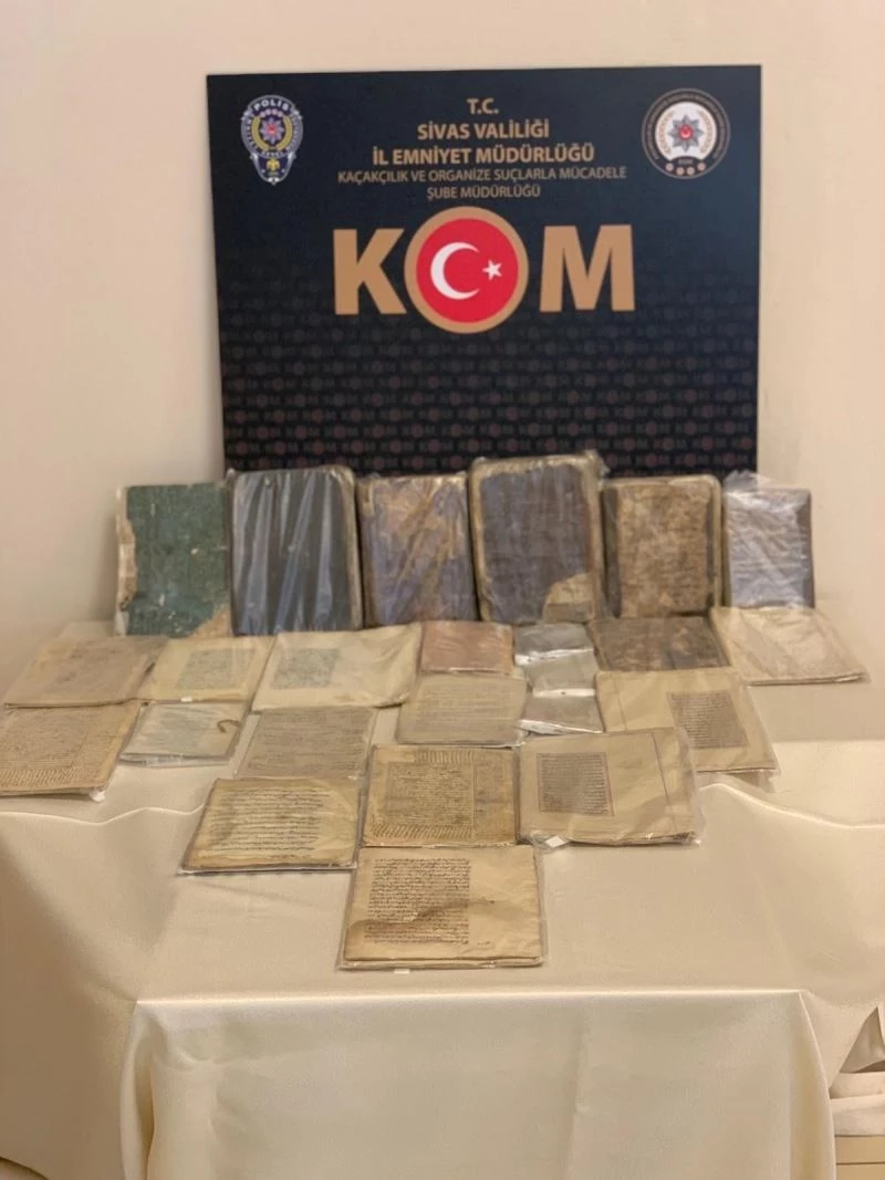 Sivas’ta düzenlenen tarihi eser kaçakçılığı operasyonunda tarihi eser niteliğinde 25 adet el yazması kitap ele geçirildi.