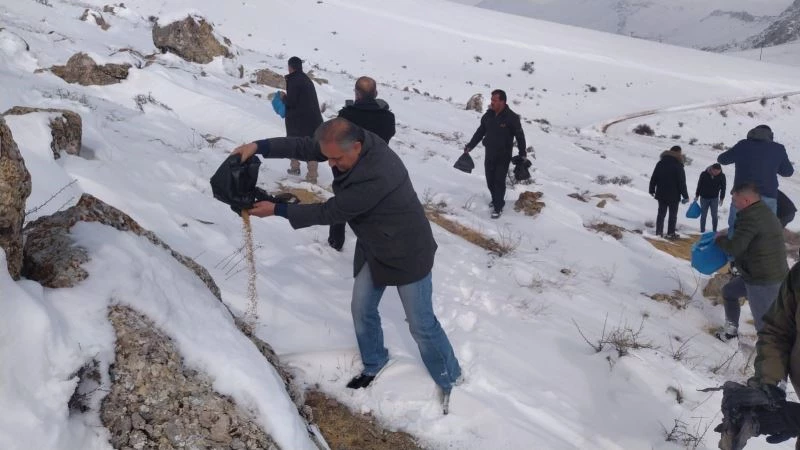 Sivas’ta yoğun kar yağışı nedeniyle doğada yem bulmakta güçlük çeken yaban hayvanları unutulmuyor.