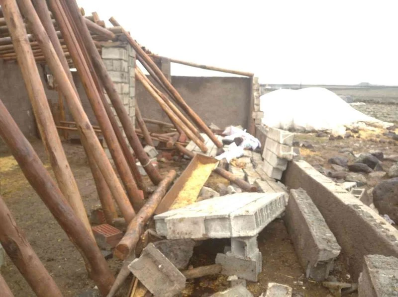 Edinilen bilgiye göre, Sumaklı Mahallesi’nde Cengiz İmrak’a ait ahır, gece saatlerinde fırtına ve aşırı yağmur nedeniyle çöktü. Çökmeyi fark eden ahır sahipleri ve çevredekiler, durumu İlçe Tarım ve Orman Müdürlüğü ile jandarmaya bildirdi.