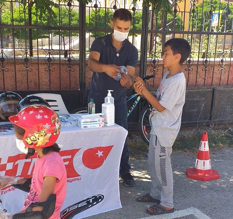 Yeni tip koronavirüs (Kovid-19) tedbirleri alınarak 1 hafta boyunca yapılan eğitimlerde gönüllü ve görevli eğitmenler 200’e yakın çocukla bir araya geldi. Eğitimlerde trafik kuralları hakkında bilgilendirme yapılırken, koruyucu ekipman kullanımı ile ilgili de bilgiler aktarıldı. Eğitim etkinliği boyunca hem çocuklar hem de eğitmenler maske, eldiven ve dezenfektan kullanımı konusunda titizlik gösterdi.