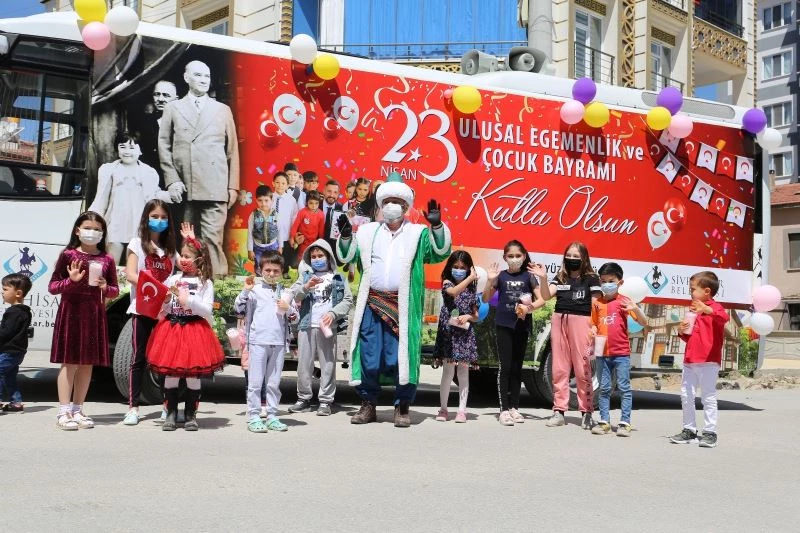 Eskişehir Sivrihisar Belediyesi, pandemi nedeniyle uygulanan sokağa çıkma kısıtlamasında 23 Nisan Ulusal Egemenlik ve Çocuk Bayramı için hazırladığı bayram otobüsü ile sokak sokak gezerek çocuklara hediye dağıttı.