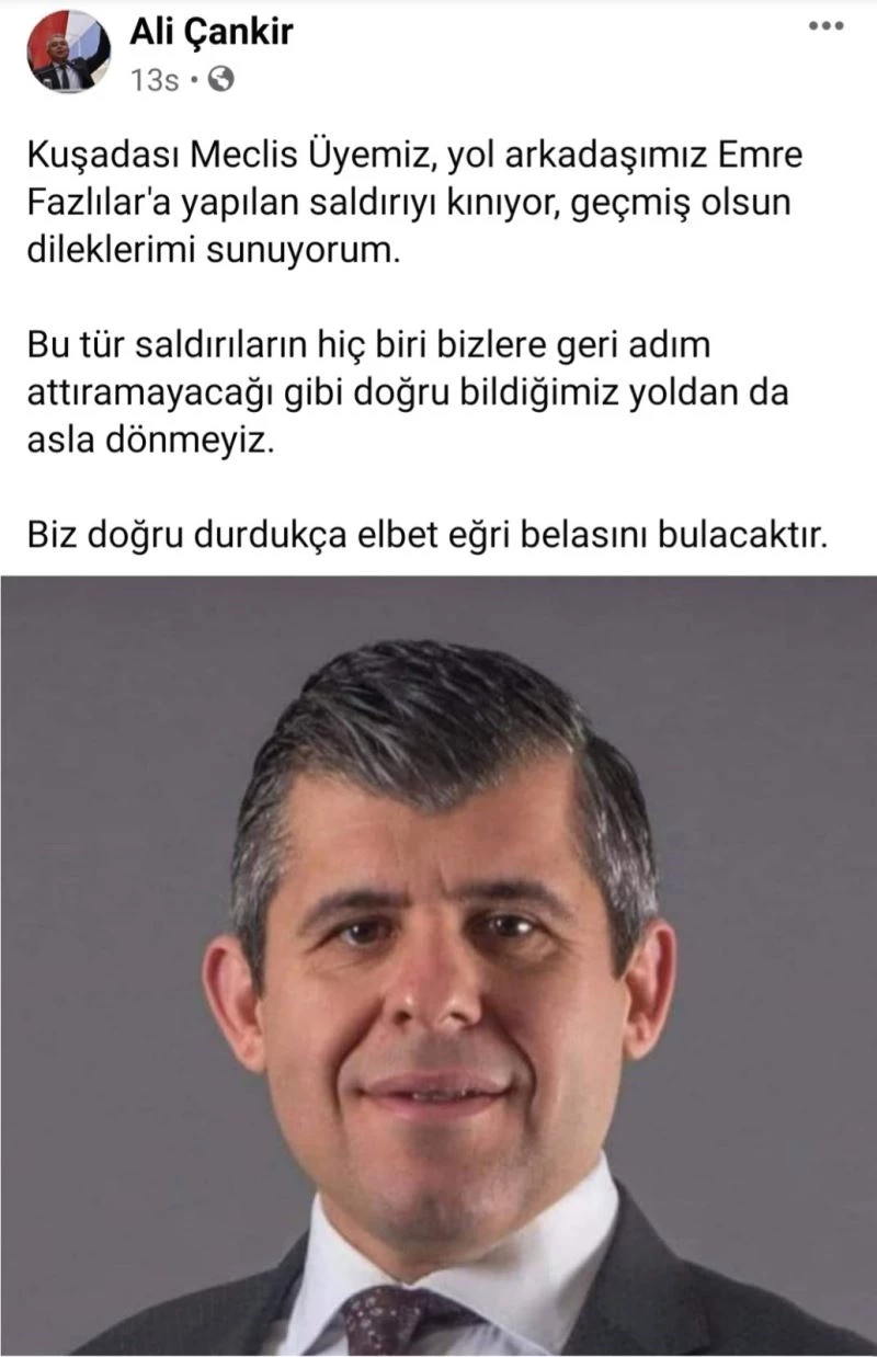 CHP Aydın İl Başkanı Ali Çankır da saldırıyı kınayarak, “Kuşadası Meclis Üyemiz, yol arkadaşımız Emre Fazlılar’a yapılan saldırıyı kınıyor, geçmiş olsun dileklerimi sunuyorum. Bu tür saldırıların hiçbiri bizlere geri adım attıramayacağı gibi doğru bildiğimiz yoldan da asla dönmeyiz. Biz doğru durdukça elbet eğri belasını bulacaktır” açıklamasında bulundu.