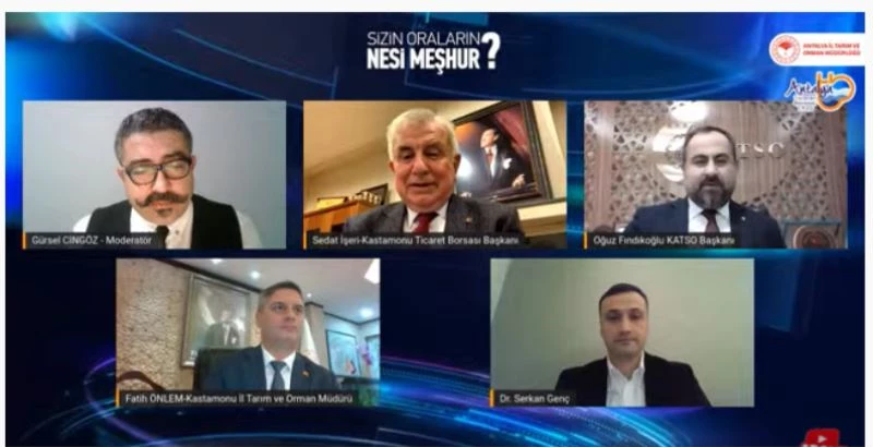 Antalya Ticaret Borsası (ATB) ile Antalya Tarım ve Orman Müdürlüğü işbirliğinde yöresel ve coğrafi işaretli ürünlerle ilgili farkındalık oluşturmak amacıyla düzenlenen “Sizin Oraların Nesi Meşhur?” programının bu haftaki konuğu Kastamonu oldu. Moderatörlüğünü Gürsel Cingöz’ün yaptığı programa, Kastamonu Ticaret ve Sanayi Odası Başkanı Oğuz Fındıkoğlu, Kastamonu Ticaret Borsası Başkanı Sedat İşeri, Kastamonu Tarım ve Orman Müdürü Fatih Önlem, Kuzey Anadolu Kalkınma Ajansı Genel Sekreteri Dr. Serkan Genç konuk olarak katılarak ilin yöresel ve coğrafi işaretli ürünlerini anlattı.
