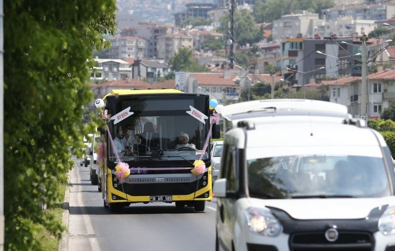 Şoför çiftin gelin arabaları, kullandıkları belediye otobüsü oldu