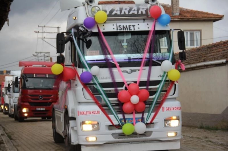 Süslenen 20 tırın oluşturduğu konvoy çevredeki vatandaşlar tarafından yoğun ilgi ile karşılandı.