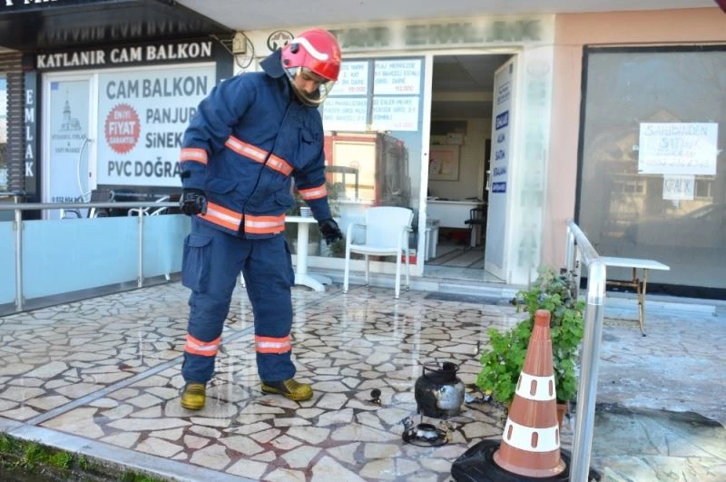 Sakarya’nın Karasu ilçesinde bir emlakçı dükkanında piknik tüpünden yangın çıktı. İşletme sahibinin soğukkanlı tutumu ise olası bir facianın önüne geçti.