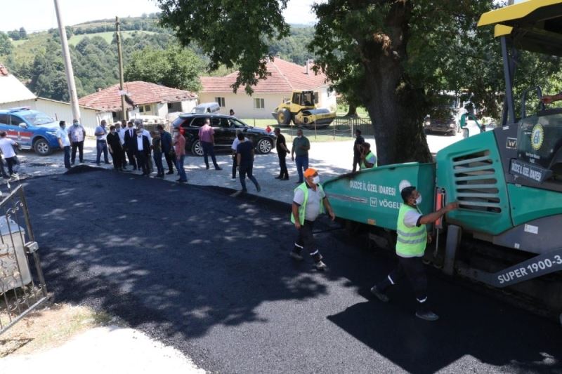 Düzce İl Özel İdaresi ekipleri il genelinde asfalt serme çalışmalarını hızlandırdı. Hava şartlarına göre asfalt serme işlemlerini farklı noktalarda sürdüren ekipler son olarak Gümüşova’ya bağlı Soğuksu köyünde asfalt serme işlemine başladı. Düzce Valisi Cevdet Atay, Gümüşova Kaymakamı Fatih Yakınoğlu ve beraberinde ki il genel meclis üyeleri ile birlikte köyde devam eden asfaltlama çalışmalarını inceledi. İl Özel İdaresi genel sekreter Hayri Şen’den asfaltlama çalışmaları hakkında bilgiler alan Vali Atay, çalışma yapan ve özveri ile işlerini yapan personele kolaylıklar diledi.