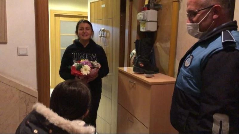 Sokağa çıkamayan minik Nisan Nur’un çiçeğini öğretmenine vermesine zabıta yardım etti