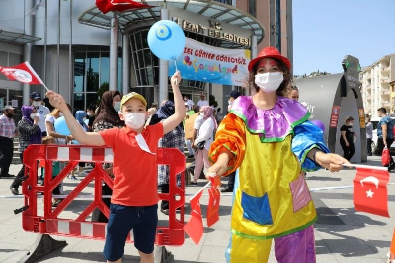 İzmit Belediyesi tarafından düzenlenen etkinliklerle, sokağa çıkma kısıtlamaları kaldırıla n çocuklar doyasıya eğlendi.