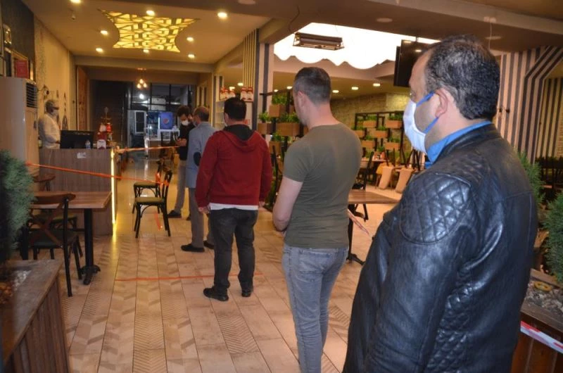 Evleri yakin olanlar, maskelerini takip en az birer metre ara ile siraya girerken, uzakta bulunanlar ise siparislerini verdi.