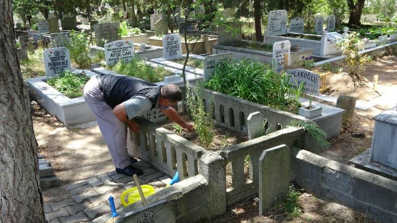 Bayram süresinde uygulanacak olan sokağa çıkma kısıtlaması nedeniyle mezarlık ziyareti yapamayacak olan vatandaşlar Çorlu Asri Mezarlığı’na gün boyu gelerek hem yakınlarının kabirlerinin bakımını yaptı hem de dualar okudu.
