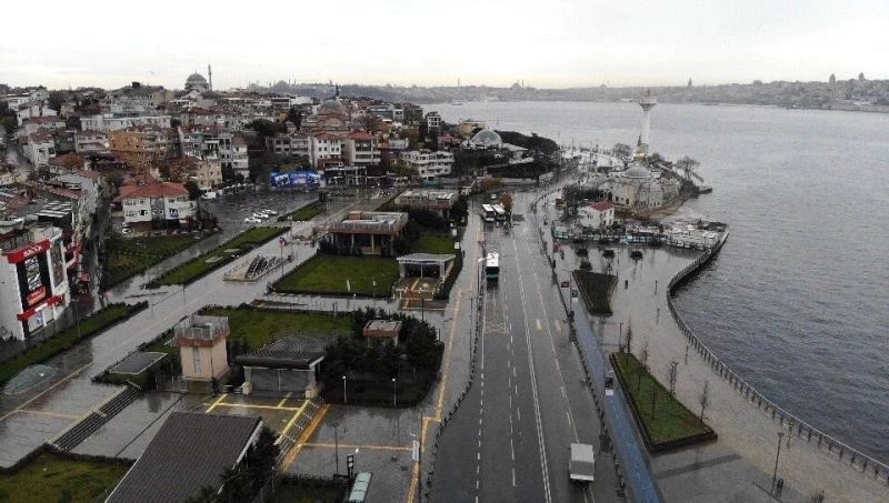 Sokağa çıkma kısıtlamasında boş kalan Kadıköy ve Üsküdar Meydanı havadan görüntülendi