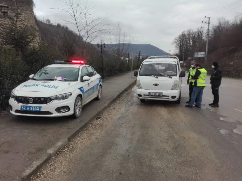 Ordu’nun Kumru ilçesinde hafta sonu uygulanan sokağa çıkma kısıtlamasında polis ekiplerinin trafik denetimleri sürüyor.