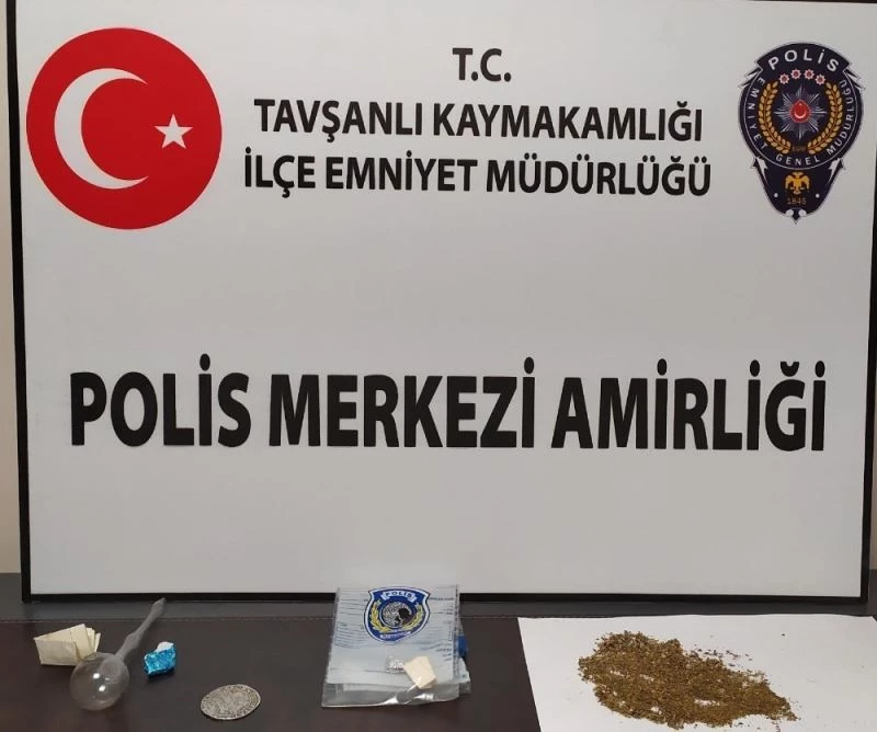 Verilen bilgiye göre, Tavşanlı İlçe Emniyet Müdürlüğü ekiplerince sokağa çıkma kısıtlaması esnasında yapılan çalışmalar neticesinde Yeni Mahalle, Kuruçay Caddesi üzerinde durdurulan araç içerisinden yere atılan maddeler olduğu görüldü. Araç içerisindeki Ş.H.K isimli şahsın üzerinden 8,2 gram bonzai, aracın alt kısmında alüminyum folyoya sarılı 0.75 gram metamfetamin, M.G isimli şahsın üst aramasında ise 1 adet gümüş sikke ele geçirildi.